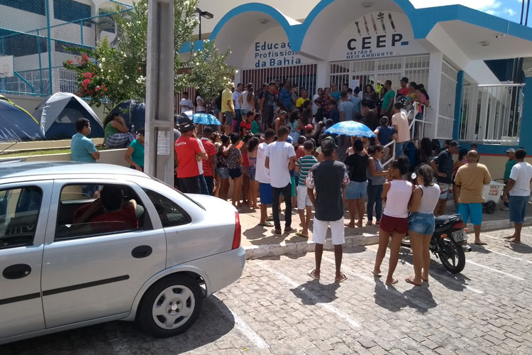 Foto: Lay Amorim/Achei Sudoeste Mais uma vez, diversos pais acamparam na porta do Centro Estadual de Educação Profissional em Gestão e Meio Ambiente (CEEP), em Brumado, a fim de garantir uma vaga para o seu filho. Em entrevista ao site Achei Sudoeste, a diretora da unidade, Márcia Gondim, credita a situação à preferência dos pais dos alunos pelo turno matutino. Ela destacou que estes tomam a decisão particularizada de acampar nas filas buscando essa vaga. “Nós explicamos todos os anos que não há necessidade disso. Neste ano de 2019, por exemplo, temos três turmas e um percentual de 20% de reprovação do ano anterior. Assim, com certeza, nessas três turmas já vão ter alunos que foram reprovados e a matrícula deles, por terem sido reprovados, é um dia antes. A gente já não tem mais as vagas das três turmas pela manhã”, disse. A diretora salientou que a escola oferece a educação profissional integrada nos dois turnos e a fila não garante a vaga no turno de preferência. “Eles estarem na fila não garante a matrícula aqui nessa escola porque aqui é um posto de matrícula, como qualquer outra escola da rede estadual da Bahia”, esclareceu Gondim, reforçando que se trata de um sistema de gestão escolar implantado pelo Governo do Estado e que uma pessoa em outra cidade pode conseguir a vaga na unidade de Brumado.