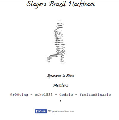 A primeira invasão ao portal aconteceu em janeiro de 2012. (Foto: Reprodução). O site da prefeitura de Brumado voltou a ser hackeado neste domingo (02) impedindo a população de acessar as notícias do governo municipal, o serviço de nota fiscal eletrônica, o Portal da Transparência, o Diário Oficial, entre outros serviços. A primeira invasão ao portal aconteceu em janeiro de 2012. Ao acessar o portal oficial do município, www.brumado.ba.gov.br, aparece o layout da página, mas com a mensagem: “Hacked By Slayres Brazil Hack e Team”, provavelmente o nome do grupo que invadiu o site. Em seguida, a página é redirecionada para um link em que aparece uma imagem no formato Gif com uma música e a frase: “A ignorância é felicidade”. A assessoria de comunicação da prefeitura ainda não se pronunciou sobre o caso.