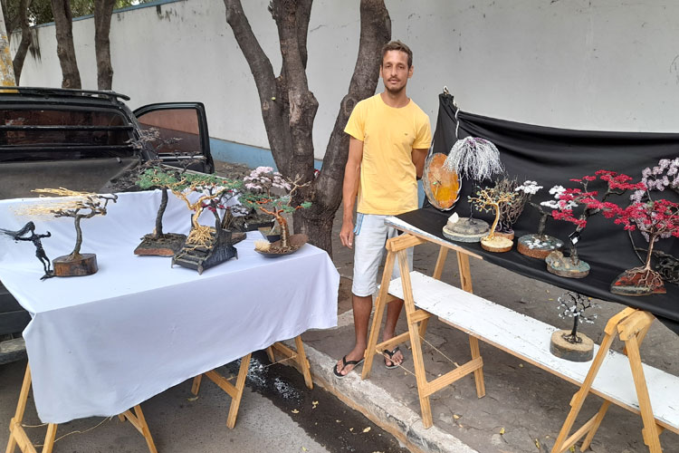 Foto: Lay Amorim/Achei Sudoeste O artesão Rogério Lucas produz árvores com arame há um ano e meio. Nas ruas de Brumado, ele conversou com o site Achei Sudoeste sobre como iniciou o trabalho. Segundo relatou, foi através de um tutorial na internet que ele começou a fabricar as primeiras peças. “Faço de várias formas diferentes. Não gosto de fazer tudo igual. Cada árvore é única”, contou.
