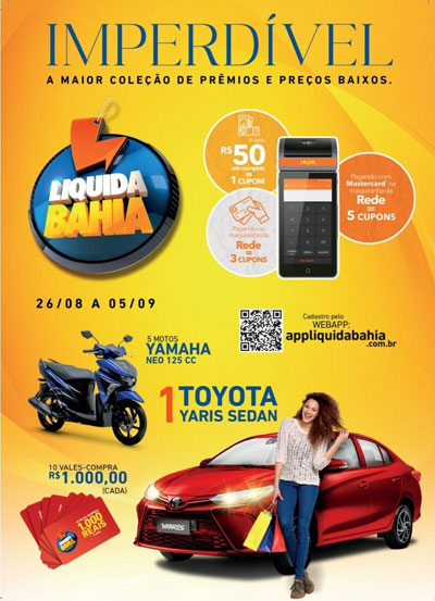 Com apoio da Federação das Câmaras de Dirigentes Lojistas (FCDL) do Estado da Bahia, a CDL de Brumado participa, entre os dias 26 de agosto e 05 de setembro, da 11ª edição da Liquida Bahia, a maior ação promocional de vendas do comércio no Estado. A campanha conta com a participação de aproximadamente 5,5 mil pontos de venda, em mais de 50 municípios baianos. A ação abrange lojas de rua e shoppings, na capital e no interior. Assim como nas edições anteriores, o consumidor que deseja participar precisa fazer um breve cadastro no site oficial appliquidabahia.com.br, acessível para celulares e computadores. Nele, são informados nome, CPF, identidade e endereço completo. É necessário também responder à pergunta: “Qual a maior promoção do varejo baiano?”. A resposta certa é “Liquida Bahia 2022”. Feito o cadastro, o consumidor tem direito a um cupom para cada R$ 50 em compras, utilizando qualquer meio de pagamento nas lojas participantes. Os prêmios deste ano são um veículo zero quilômetro da marca Toyota Yaris Sedan, cinco motocicletas Yamaha Neo 125 cilindradas e dez vales-compra de R$ 1.000 cada um. Os vendedores também recebem prêmio, concorrendo a cinco vales-compra de R$ 1.000 cada um.